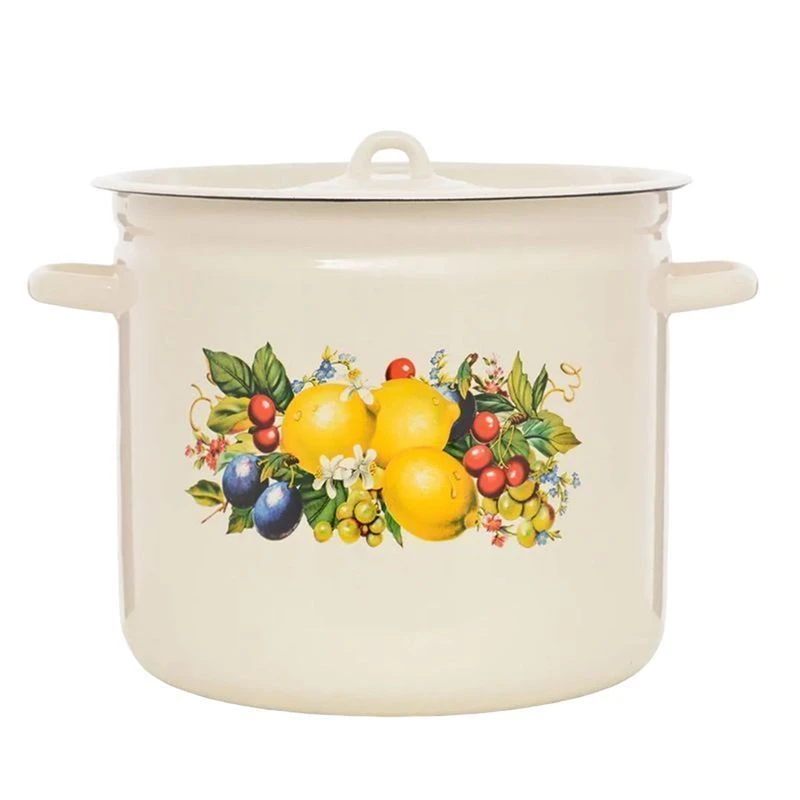 Кастрюля изготовлена из высококачественного стального проката и покрыта стеклокерамической эмалью. Внутри и снаружи - трехслойное глянцевое эмалированное покрытие. Эмалевое покрытие, являясь стекольной массой, не вызывает аллергию и надежно защищает пищу от контакта с металлом. Кроме того, такое покрытие долговечно, оно устойчиво к механическому воздействию, не царапается и не "сходит", а стальная основа практически не подвержена механической деформации, благодаря чему срок эксплуатации увеличивается. Крышка с эмалированным покрытием оснащена удобной ручкой, . Она плотно прилегает к краю, сохраняя аромат блюд. Подходит для всех типов плит, включая индукционные. Можно мыть в посудомоечной машине.