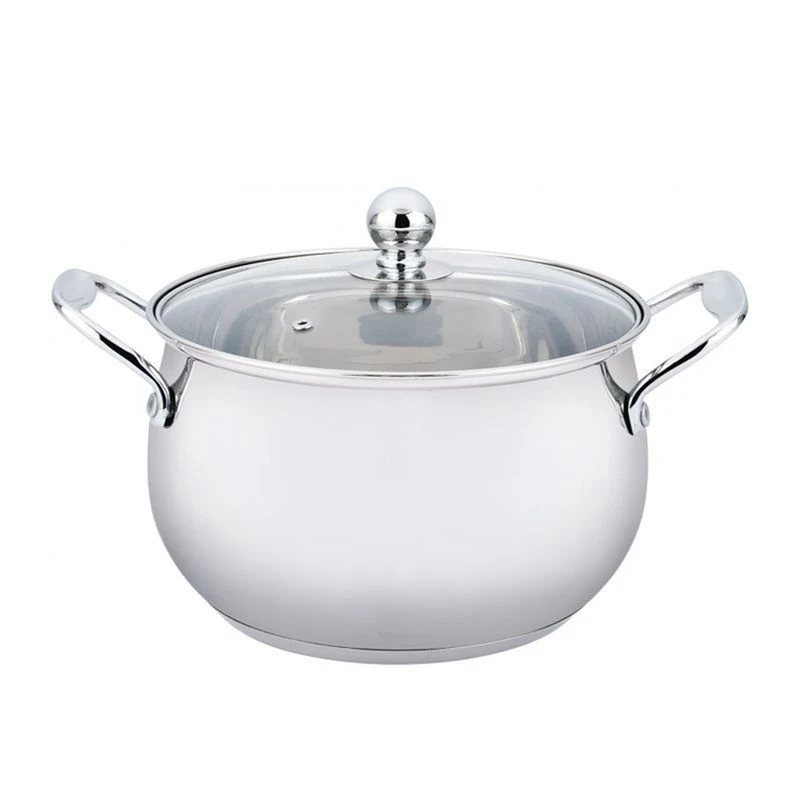 Кастрюля со стеклянной крышкой объемом 4 л, диаметр 20 см.Толщина стенки 0,5 мм, толщина дна 2,5 мм, высота 12,5 см. На внутренней стенке мерная шкала. Поверхность зеркальная. Ручки из нержавеющей стали. Дно капсулированное. Подходит для использования на всех типах плит.