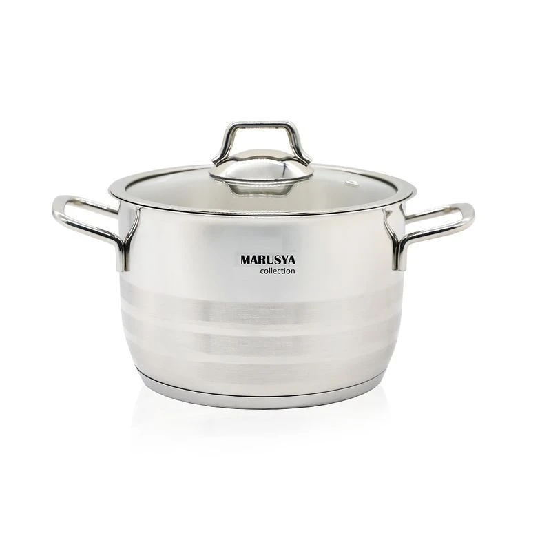 Преимущество данной посуды- это толстое многослойное дно 5 мм, ненагревающиеся ручки, крышка с металлическим ободком и пароотводом и мерная шкала. Удобные ручки кастрюли не скользят и не нагреваются в процессе приготовления пищи. Крышка из термостойкого стекла с отверстием для отведения пара выдерживает резкий перепад температур и обладает высокой термоустойчивостью. Посуда подходит для использования на любых типах плит, включая индукционные.Можно мыть в посудомоечной машине.