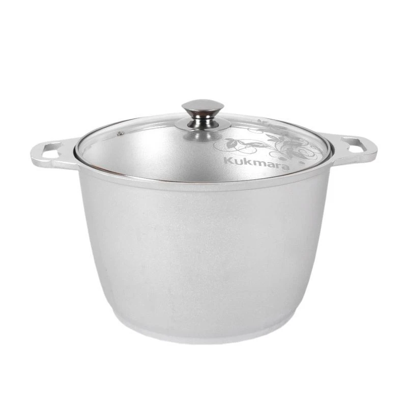Кастрюля изготавливается из пищевых алюминиевых сплавов методом кокильного литья. Это самый качественный и экологически чистый способ изготовления литой толстостенной посуды. При приготовлении пищи в литой посуде создается эффект "русской печи"; еда в ней "томится", а не жарится, придавая пище особый вкус. Такая посуда удобна для жарки мяса, запекания индейки или курицы, тушения овощей.
