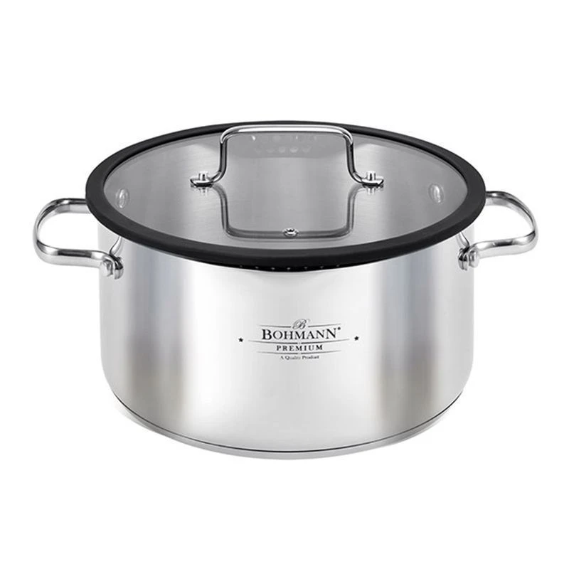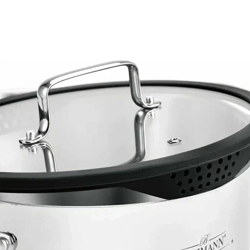 Кастрюля из высококачественной нержавеющей стали 18-10 отличительной чертой стали 18-10 является высокая плотность,благодаря этому поверхность металлического изделия практически не содержит микропор, а значит, грязи и микробам просто негде скапливаться. Кроме того, такая сталь очень тверда и устойчива к механическим повреждениям: никаких царапин, сколов и других дефектов, никакой коррозии, ржавчины и окислительных реакций. Посуда имеет многослойное капсульное дно, которое быстро и равномерно накапливает тепло и так же равномерно передает его в пищу. Капсульное дно позволяет готовить блюда с минимальным количеством воды и жира, сохраняя при этом вкусовые и питательные свойства продуктов. Применение технологии многослойного дна создает эффект удержания тепла – пища готовится и после отключения плиты благодаря термоаккумулирующим свойствам посуды. Для удобства крышки оснащены отверстиямы для слива жидкости. Подходит для всех видов бытовых плит включая индукцию.Можно мыть в посудомоечной машине.