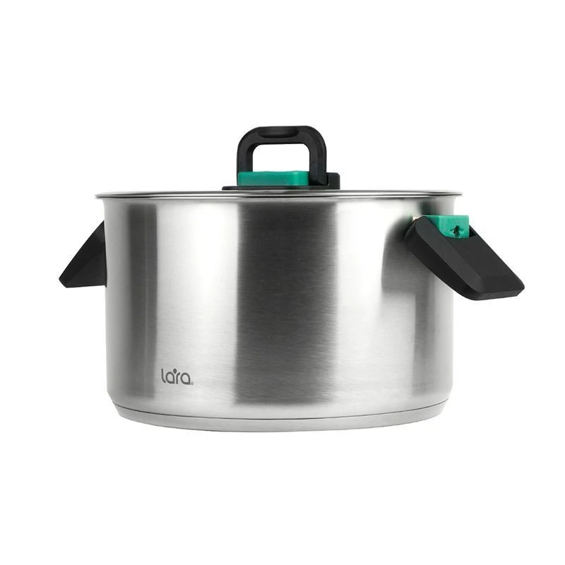 Кастрюля выполнена из высококачественной пищевой стали. 5-слойное капсулированное дно обеспечивает равномерный нагрев, а индукционный слой позволяет использовать посуду на любой плите. Для контроля за количеством жидкости внутри кастрюль нанесена мерная шкала. Благодаря особенному строению ручек, данная посуда занимает меньше места при хранении. Материал из которого они выполнены, обеспечивает теплоизоляцию, что делает посуду серии Изумруд невероятно удобной и безопасной. Качественные материалы позволяют легко ухаживать – данную серию можно мыть в посудомоечной машине.