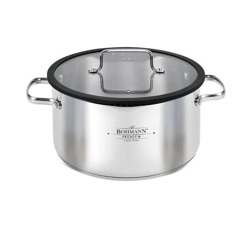 Кастрюля из высококачественной нержавеющей стали 18-10 отличительной чертой стали 18-10 является высокая плотность,благодаря этому поверхность металлического изделия практически не содержит микропор, а значит, грязи и микробам просто негде скапливаться. Кроме того, такая сталь очень тверда и устойчива к механическим повреждениям: никаких царапин, сколов и других дефектов, никакой коррозии, ржавчины и окислительных реакций. Посуда имеет многослойное капсульное дно, которое быстро и равномерно накапливает тепло и так же равномерно передает его в пищу. Капсульное дно позволяет готовить блюда с минимальным количеством воды и жира, сохраняя при этом вкусовые и питательные свойства продуктов. Применение технологии многослойного дна создает эффект удержания тепла – пища готовится и после отключения плиты благодаря термоаккумулирующим свойствам посуды. Для удобства крышки оснащены отверстиямы для слива жидкости. Подходит для всех видов бытовых плит включая индукцию.Можно мыть в посудомоечной машине.