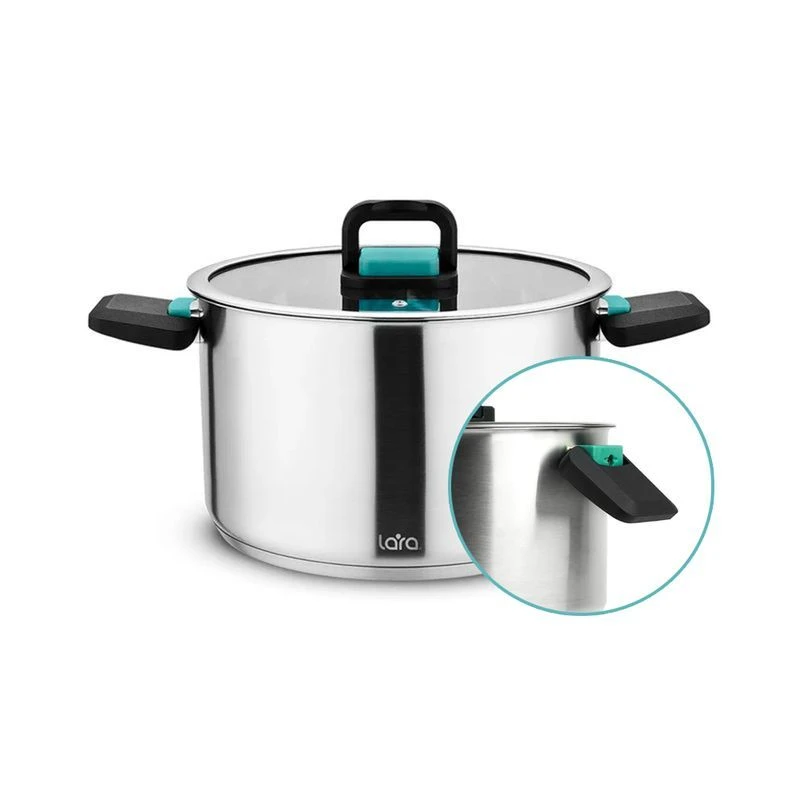 Кастрюля выполнена из высококачественной пищевой стали. 5-слойное капсулированное дно обеспечивает равномерный нагрев, а индукционный слой позволяет использовать посуду на любой плите. Для контроля за количеством жидкости внутри кастрюль нанесена мерная шкала. Благодаря особенному строению ручек, данная посуда занимает меньше места при хранении. Материал из которого они выполнены, обеспечивает теплоизоляцию, что делает посуду серии Изумруд невероятно удобной и безопасной. Качественные материалы позволяют легко ухаживать – данную серию можно мыть в посудомоечной машине.