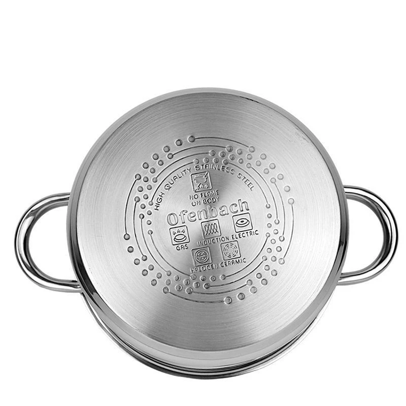 Кастрюля из нержавеющей стали — имеет прекрасный внешний вид, оснащена капсульным дном и отличается высокой прочностью и долговечностью в использовании. Крепление ручек выполнено методом точечной сварки. Благодаря высокому качеству, кастрюля будет служить Вам очень долго и принесет только удовольствие от использования.