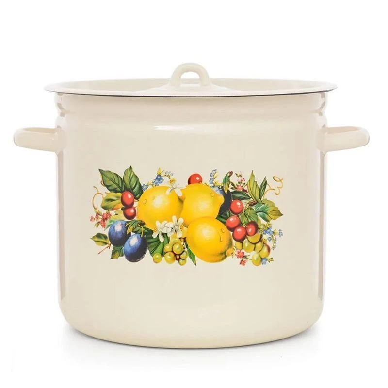 Кастрюля изготовлена из высококачественного стального проката и покрыта стеклокерамической эмалью. Внутри и снаружи - трехслойное глянцевое эмалированное покрытие. Эмалевое покрытие, являясь стекольной массой, не вызывает аллергию и надежно защищает пищу от контакта с металлом. Кроме того, такое покрытие долговечно, оно устойчиво к механическому воздействию, не царапается и не "сходит", а стальная основа практически не подвержена механической деформации, благодаря чему срок эксплуатации увеличивается. Крышка с эмалированным покрытием оснащена удобной ручкой, . Она плотно прилегает к краю, сохраняя аромат блюд. Подходит для всех типов плит, включая индукционные. Можно мыть в посудомоечной машине.