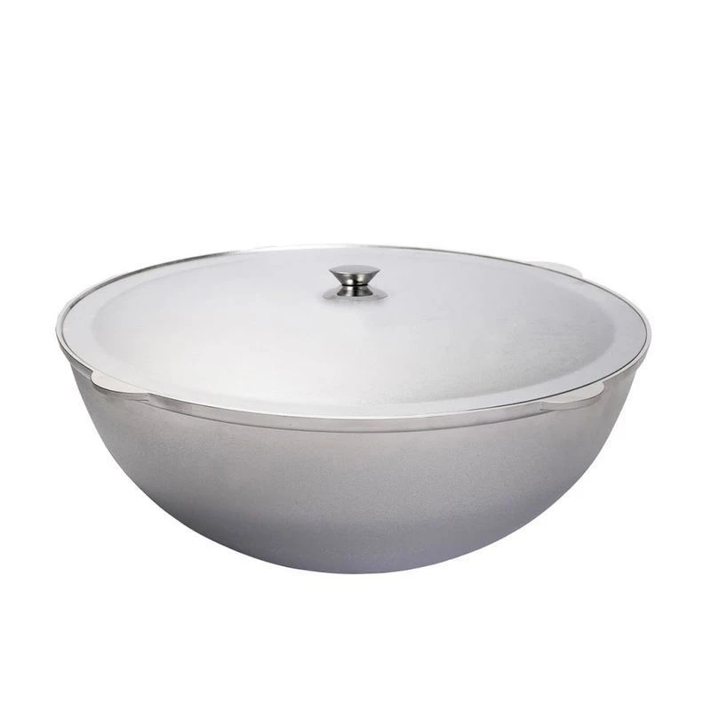 Казан изготавливается из пищевых алюминиевых сплавов методом кокильного литья. Это самый качественный и экологически чистый способ изготовления литой толстостенной посуды. При приготовлении пищи в литой посуде создается эффект "русской печи"; еда в ней "томится", а не жарится, придавая пище особый вкус. Такая посуда удобна для жарки мяса, запекания индейки или курицы, тушения овощей.