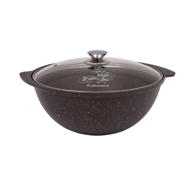 Казан - традиционная азиатская посуда, отличающаяся сферическим дном, все больше и больше набирает свою популярность. Такая форма обеспечивает равномерное распределение тепла по стенкам: в них можно варить, как в обычных кастрюлях, а также тушить, томить, делать предварительную обжарку. Литой алюминиевый казан особенно подойдет тем, кто любит плов, чахохбили и думляму. Цельнолитые ручки позволяют использовать казан в духовом шкафу. Казаны для плова комплектуются стеклянными крышками из термостойкого стекла.Крышки комплектуются ручками из нержавеющей стали, поэтому их можно использовать в духовом шкафу.