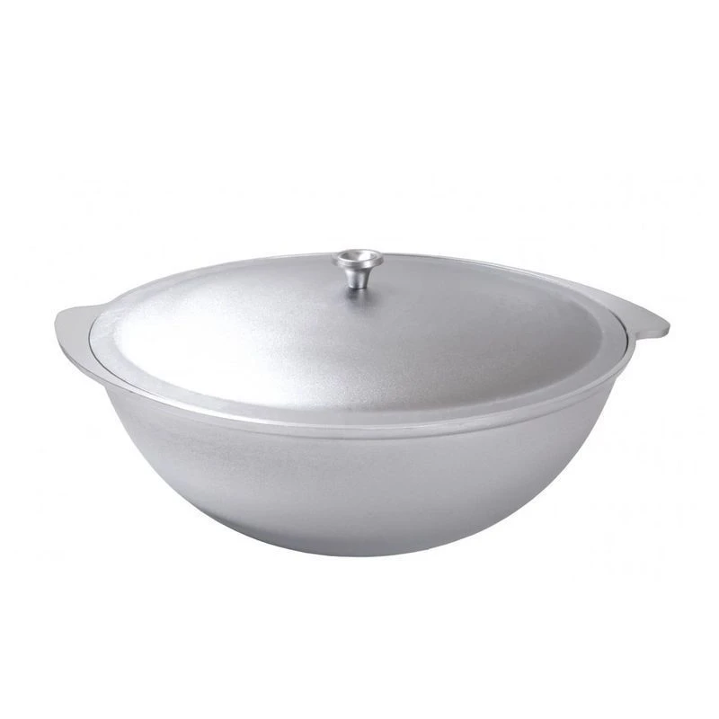 Казан изготавливается из пищевых алюминиевых сплавов методом кокильного литья. Это самый качественный и экологически чистый способ изготовления литой толстостенной посуды. При приготовлении пищи в литой посуде создается эффект "русской печи"; еда в ней "томится", а не жарится, придавая пище особый вкус. Такая посуда удобна для жарки мяса, запекания индейки или курицы, тушения овощей.