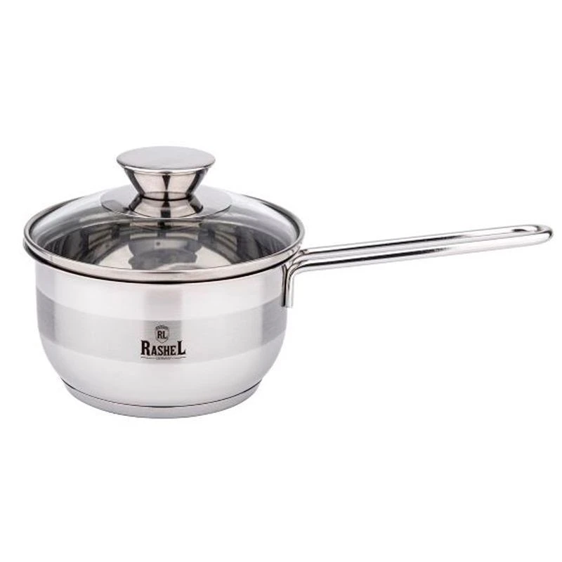 Ковши торговой марки "RASHEL" выполнены из высококачественной нержавеющей стали. Ковши удобны в использовании, за ними легко и просто ухаживать. На внутренней поверхности корпуса ковша нанесена мерная шкала, которая помогает контролировать объем жидкости.Многослойное капсульное дно равномерно распределяет тепло и долгое время сохраняет достигнутую температуру, тем самым обеспечивает равномерный нагрев и равномерную подачу тепла во внутрь ковша. Пища не пригорает благодаря равномерному распределению тепла по нижней части и стенкам, продукты с высоким содержанием влаги можно подвергать кулинарной обработке без воды и самое главное исключено образование канцерогенных веществ, так как для жарки можно не использовать растительное масло.