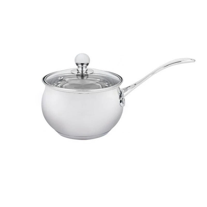 Ковш со стеклянной крышкой объемом 2,1 л, диаметр 16 см.Толщина стенки 0,5 мм, толщина дна 2,5 мм, высота 10,5 см. На внутренней стенке мерная шкала. Поверхность зеркальная. Ручка из нержавеющей стали. Дно капсулированное.Подходит для использования на всех типах плит.