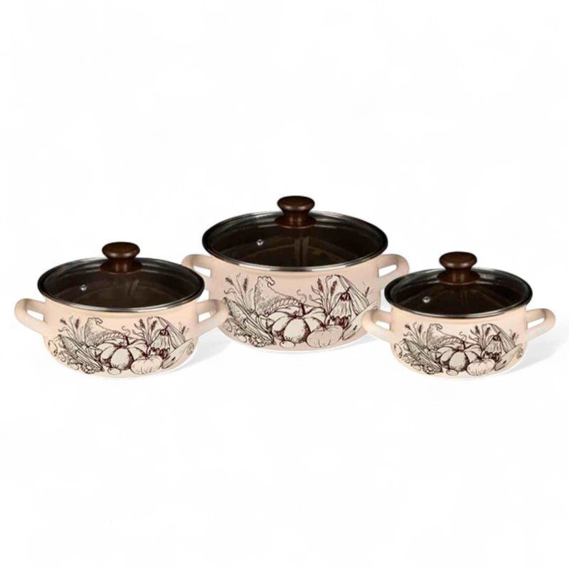 Набор кастрюль КМЗ Агроном-1 Экстра со стеклянными крышками, из эмалированной стали, 3 предмета, объемом 1.5л, 2л, 3л - посуда для кухни. Удобной и функциональной кухню делает не только бытовая техника, но и наличие качественных принадлежностей, аксессуаров, с помощью которых и происходит процесс готовки блюд. Например, набор кастрюль КМЗ Агроном-1. Изделия реализуются в индивидуальной упаковке. Кастрюли выполнены из эмалированной стали. Цвет - слоновая кость. В набор входит 3 предмета объемом 1.5л, 2л, 3л. Набор для кухни производится из экологичного сырья. Это гарантирует отсутствие химических реакций и изменений вкуса пищи. Не требуют серьезного ухода, легко моются любым соответствующим средством. Подойдут не только для приготовления пищи, но и хранения продуктов. Необходима качественная посуда? Кастрюли КМЗ Агроном-1 расширят возможности вашей кухни. Набор посуды - кастрюли набор - набор кастрюль с крышками.
