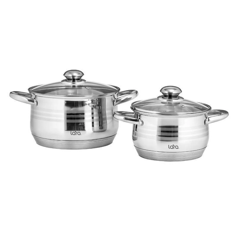 Округлый дизайн, зеркальная полировка корпуса с тремя матовыми полосами придают изделиям законченный внешний вид и делают их стильными элементами интерьера. Внутренняя мерная шкала для соблюдения рецептуры. Корпус выполнен из высокоуглеродистой нержавеющей стали AISI201 с комбинированной полировкой. Крышка с разборной ручкой изготовлена из жаропрочного стекла с паровыпуском. Стальной обод C-формы плотно прилегает к стенкам. Надежные ненагревающиеся полые ручки на прочных заклепках. Девятиступенчатое индукционное капсулированное дно подойдет для всех типов плит.Можно мыть в посудомоечной машине.