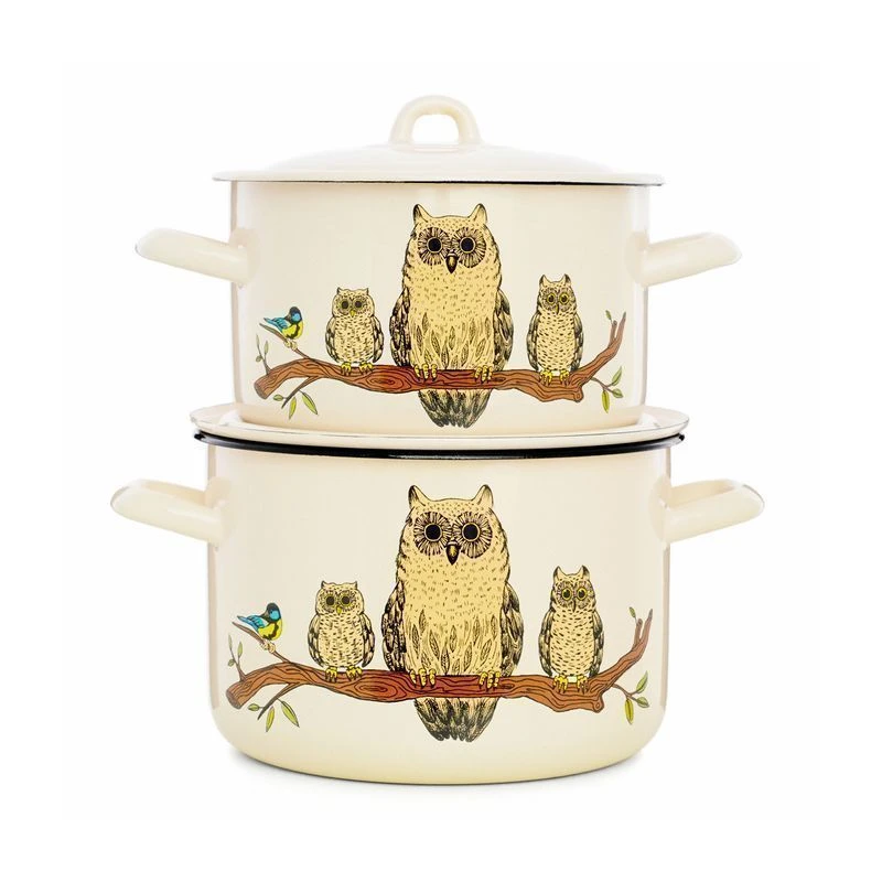 Набор посуды Эстет изготовлен из высококачественного стального проката и покрыта стеклокерамической эмалью. Внутри и снаружи - трехслойное глянцевое эмалированное покрытие. Эмалевое покрытие, являясь стекольной массой, не вызывает аллергию и надежно защищает пищу от контакта с металлом. Кроме того, такое покрытие долговечно, оно устойчиво к механическому воздействию, не царапается и не "сходит", а стальная основа практически не подвержена механической деформации, благодаря чему срок эксплуатации увеличивается. Крышка с эмалированным покрытием оснащена удобной ручкой. Она плотно прилегает к краю, сохраняя аромат блюд. Подходит для всех типов плит, включая индукционные. Можно мыть в посудомоечной машине.