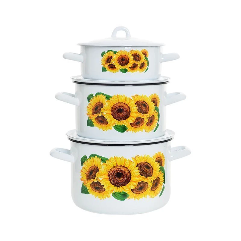 Набор посуды изготовлен из высококачественного стального проката и покрыт стеклокерамической эмалью. Внутри и снаружи трехслойное глянцевое эмалированное покрытие. Эмалевое покрытие, являясь стекольной массой, не вызывает аллергию и надежно защищает пищу от контакта с металлом. Кроме того, такое покрытие долговечно, оно устойчиво к механическому воздействию, не царапается, а стальная основа практически не подвержена механической деформации, благодаря чему срок эксплуатации увеличивается. Крышка с эмалированным покрытием оснащена удобной ручкой. Она плотно прилегает к краю, сохраняя аромат блюд. Подходит для всех типов плит, включая индукционные. Можно мыть в посудомоечной машине.