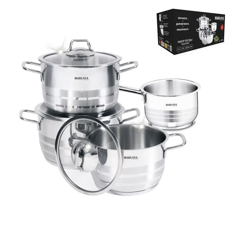 Кастрюли и ковш удобны в использовании, за ними легко и просто ухаживать. Пятислойное капсульное дно равномерно распределяет тепло и долгое время сохраняет достигнутую температуру, тем самым обеспечивает равномерный нагрев и равномерную подачу тепла во внутрь кастрюли. Пища не пригорает благодаря равномерному распределению тепла по нижней части и стенкам, продукты с высоким содержанием влаги можно подвергать кулинарной обработке без воды и самое главное исключено образование канцерогенных веществ, так как для жарки можно не использовать растительное масло.
