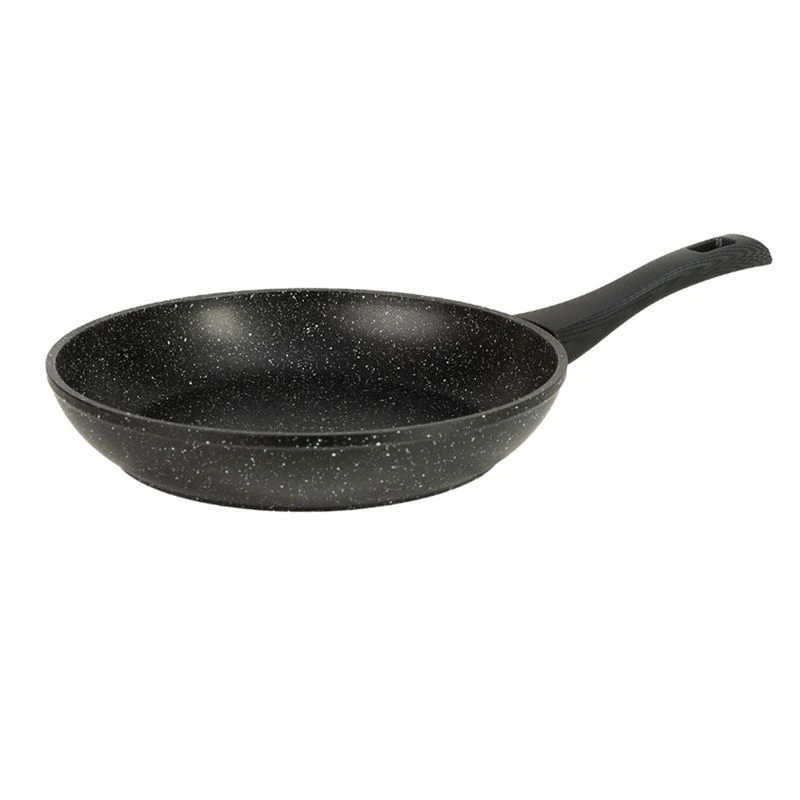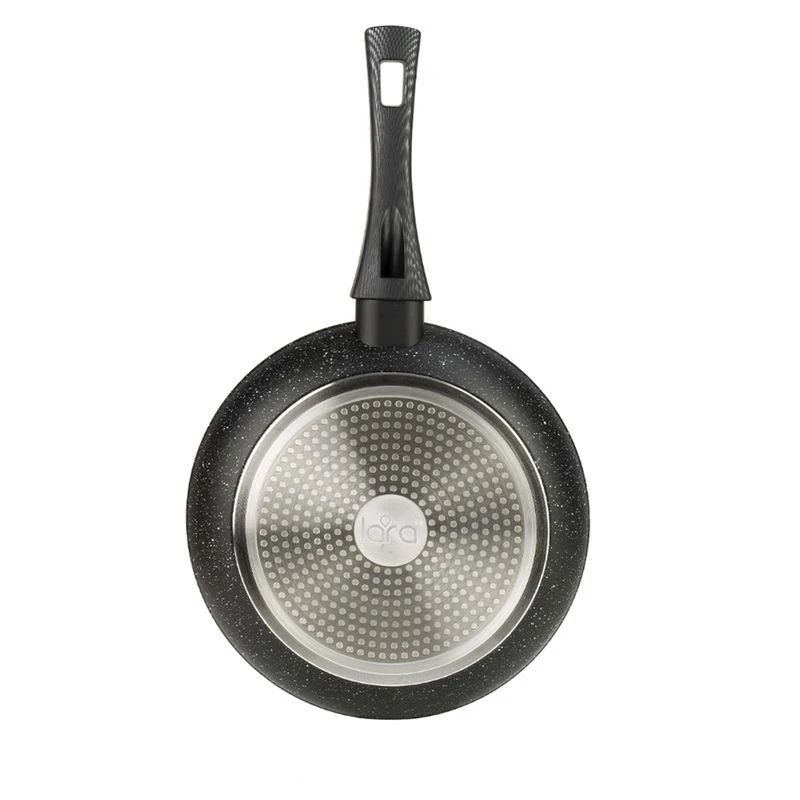 Сковороды серии «Carbon» имеют толщину стенок и дна 4,5 мм. Чем толще дно и стенки, тем равномернее разогревается сковорода, она меньше теряет температуру при добавлении на нее продуктов и медленнее остывает. Просто идеально для жарки и тушения мяса! Сами по себе толстые дно и стенки уже придают сковороде антипригарные свойства, а дополняет их трехслойное антипригарное покрытие TITAN PLUS.Оно содержит вкрапления мраморной крошки. Такая технология создает неровную поверхность, уменьшающую площадь соприкосновения раскаленного дна и продуктов, не давая им пригорать.