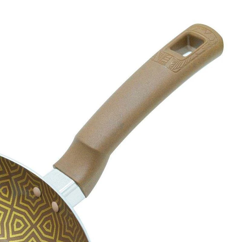 Алюминиевая посуда выполнена из экологичных перерабатываемых материалов. Дизайн посуды отличается уникальными рисунком в виде листьев. Дополняет дизайн удобная, экологичная, жаропрочная ручка из неокрашенного бакелита.
