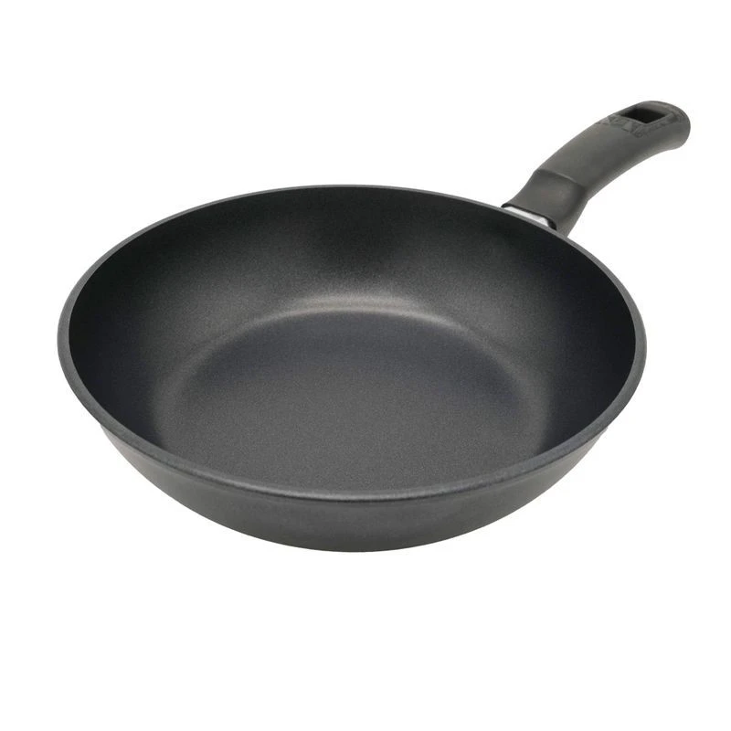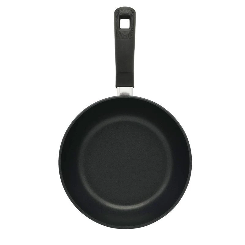 Сковорода алюминиевая ПоварЛюкс - это качественная литая посуда с антипригарным покрытием.Универсальный массивный корпус с высокими бортами и утолщенным дном долго держит тепло и создает эффект чугунной посуды. Покрытие изготовлено на водной основе, не содержит перфтороктановую кислоту, не вступает во взаимодействие с готовящимися продуктами и абсолютно безопасно для человека и окружающей среды.Изделие подходит для газовых, электрических, стеклокерамических и индукционных плит. Можно мыть в посудомоечной машине.Диаметр дна 19,8см Длина с ручкой 45,5см Толщина стенок 2,5мм Толщина дна 3,5мм