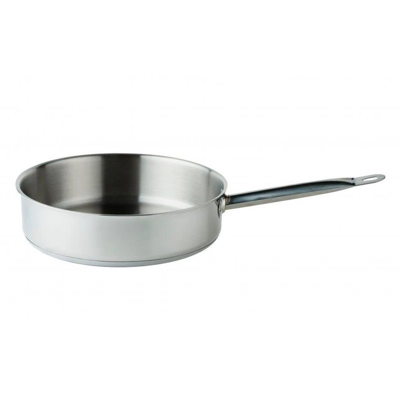 Сковорода глубокая из нержавеющей стали - стильное решение для Вашей кухни. Сотейник идеально подходит для индукции, нагревается быстрее алюминиевых аналогов, т.к. дно полностью выполнено из стали. Следовательно, меньше расходуется энергия. Утолщенное дно равномерно распределяет тепло и сохраняет его, так же способствую более быстрому приготовлению пищи. Сотейник отлично подходит как для жарки, так и для тушения. Диаметр сковороды 24 см, диаметр дна 22 см, высота борта 6.5 см. Подходит для всех типов плит, включая индукцию. Можно использовать в посудомоечной машине.