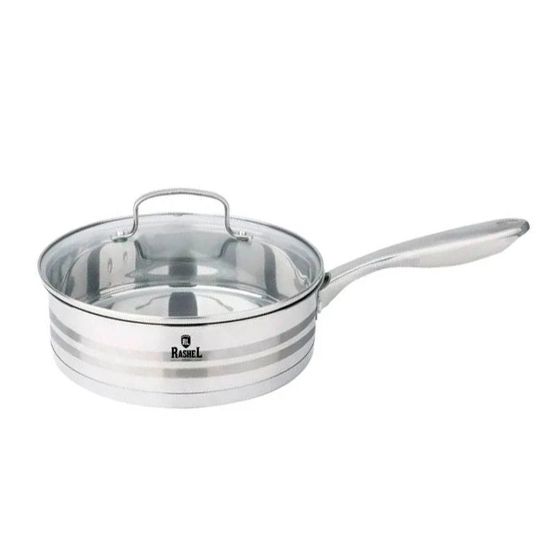 Сковороды торговой марки "RASHEL" выполнены из высококачественной нержавеющей стали. Сковороды удобны в использовании, за ними легко и просто ухаживать. Сковороды оснащены удобной ручкой из нержавеющей стали. Способ крепления ручек: клепочный. Многослойное капсульное дно равномерно распределяет тепло и долгое время сохраняет достигнутую температуру, тем самым обеспечивает равномерный нагрев и равномерную подачу тепла во внутрь сковороды. Пища не пригорает благодаря равномерному распределению тепла по нижней части и стенкам, продукты с высоким содержанием влаги можно подвергать кулинарной обработке без воды и самое главное исключено образование канцерогенных веществ, так как для жарки можно не использовать растительное масло.