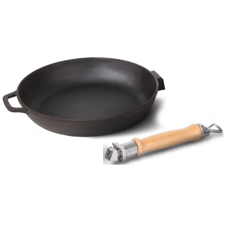 Сковорода выполнена из экологически чистого материала, имеет литой чугунный корпус и утолщенное дно 4мм. Поверхность сковороды устойчива к металическим ложкам, лопаткам, которые используют для перемешивания.
