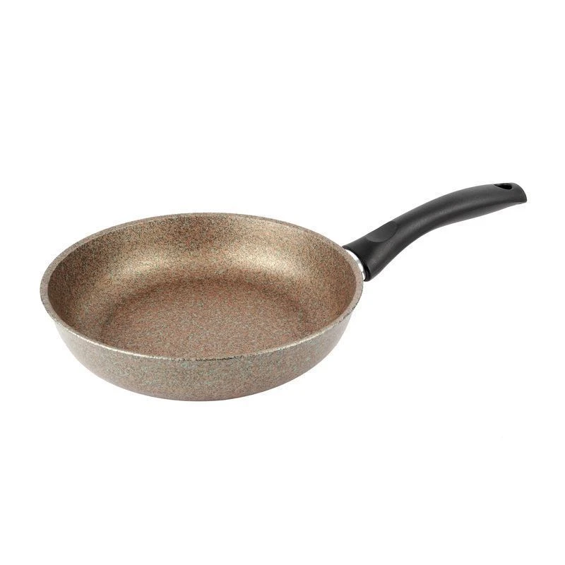 Сковорода с антипригарным покрытием имеет ровное проточенное дно, которое обеспечивает максимальное прилегание дна посуды к плите для более быстрого и равномерного нагрева.