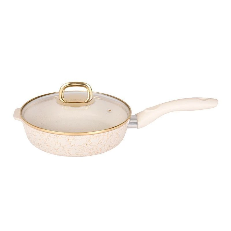 Оригинальная отделка внешней поверхности с помощью золотых и серебряных нитей, придающих посуде особое изящество и богатство, а так же уникальное внутреннее противопригорающее покрытие, обладающее исключительными антипригарными свойствами, прочностью и износостойкостью, не содержит PFOA, кадмий, свинец и полностью безопасно. Высокая прочность антипригарного покрытия позволяет использовать неострые кухонные металлические принадлежности.