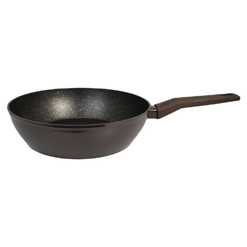 Эргономичная прорезиненная ручка стилизованная под дерево с петлей для подвешивания сковороды