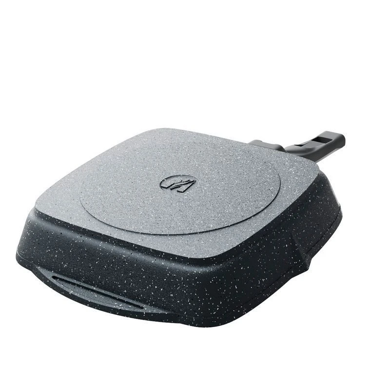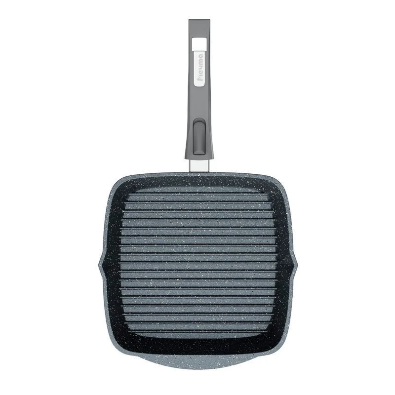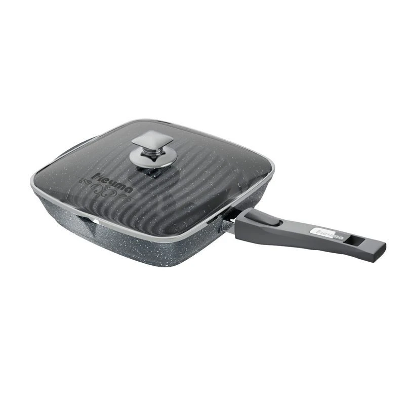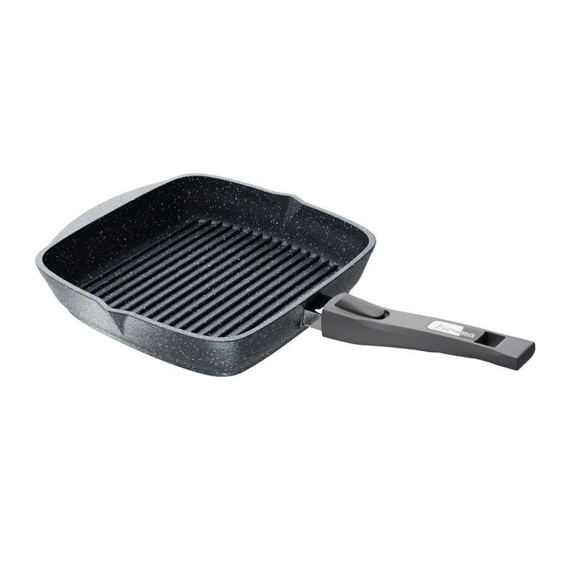 Если вы приверженец здорового питания и стараетесь готовить с минимальным количеством масла, эта сковорода создана для вас. Сковороды гриль пользуются огромной популярностью у профессиональных поваров так как её использование придает блюдам особенный оттенок вкуса. Главный признак такой сковороды — ребристое дно. Продукты жарятся на этих ребрах как на решетке, только без открытого огня. Во время приготовления сок и жир от продуктов не пригорает к их поверхности, а стекает в канавки между ребрами на дне и уже оттуда испаряется. Мясо, рыба, овощи, котлеты получаются сочными, но не жирными-как после настоящего гриля.