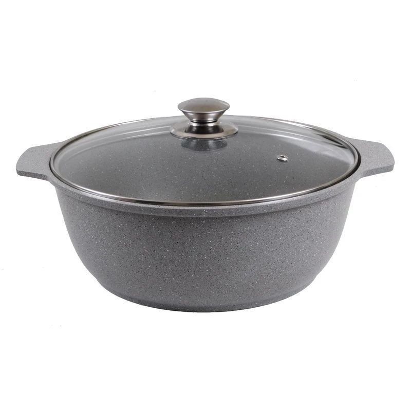 Кастрюля-жаровня "Kukmara" изготовлена из литого алюминия и покрыта инновационным антипригарным мраморным покрытием нового поколения на водной основе, усиленным сверхтвердыми частицами минералов.