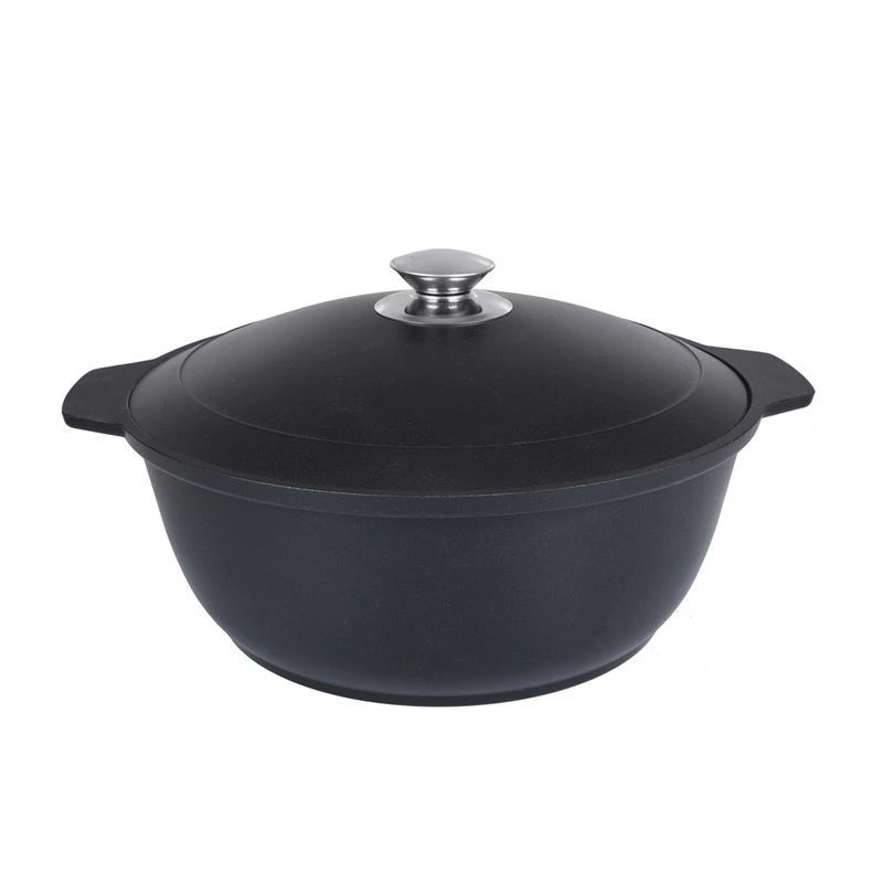 Кастрюля-жаровня изготовлена из литого алюминия с немецким высококачественным антипригарным покрытием на водной основе GREBLON® Non-Stick C2+, усиленным сверхпрочными минеральными частицами.