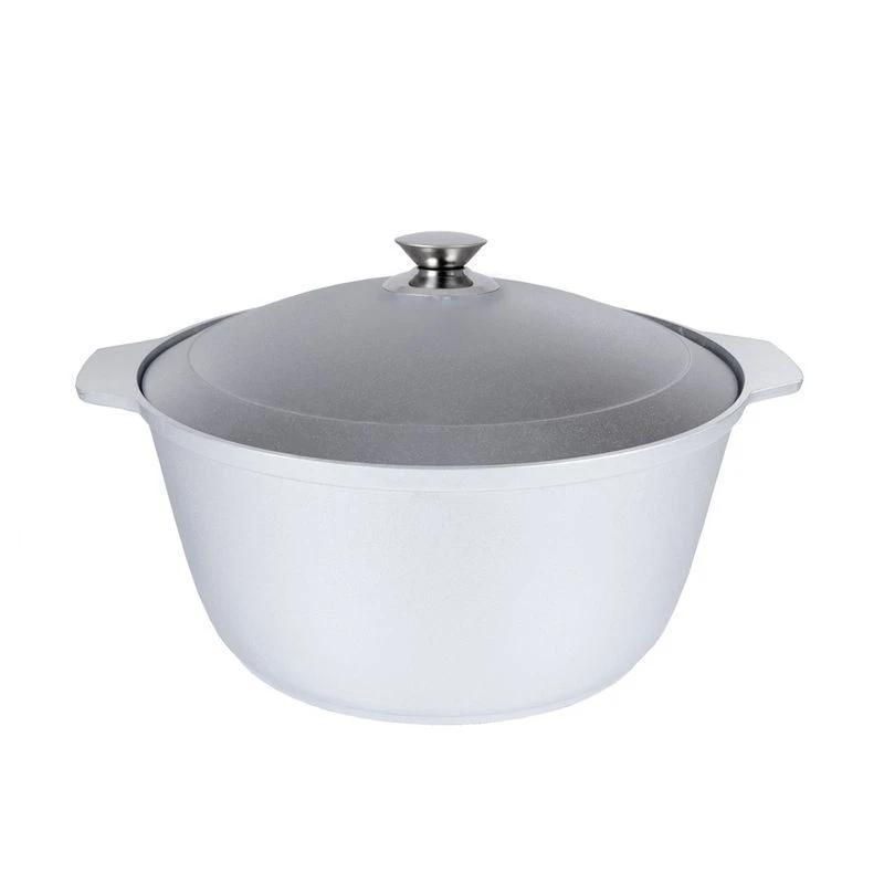 Кастрюля-жаровня изготавливается из пищевых алюминиевых сплавов методом кокильного литья. Это самый качественный и экологически чистый способ изготовления литой толстостенной посуды. При приготовлении пищи в литой посуде создается эффект "русской печи"; еда в ней "томится", а не жарится, придавая пище особый вкус. Такая посуда удобна для жарки мяса, запекания индейки или курицы, тушения овощей.