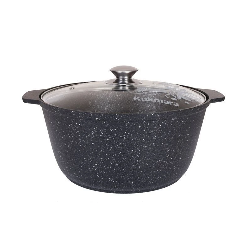 -значительная толщина стенок и дна исключает деформацию корпуса кастрюли-жаровни, гарантирует ее долговечность, обеспечивает необходимую прочность покрытия;