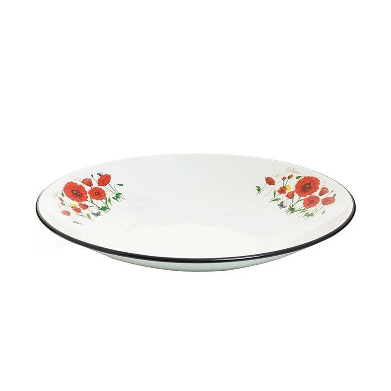 Оригинальное блюдо, изготовленное из эмалированной стали, прекрасно подойдет для подачи нарезок, закусок и других блюд. Блюдо декорировано красивым узором. Оно украсит ваш кухонный стол, а также станет замечательным подарком к любому празднику.