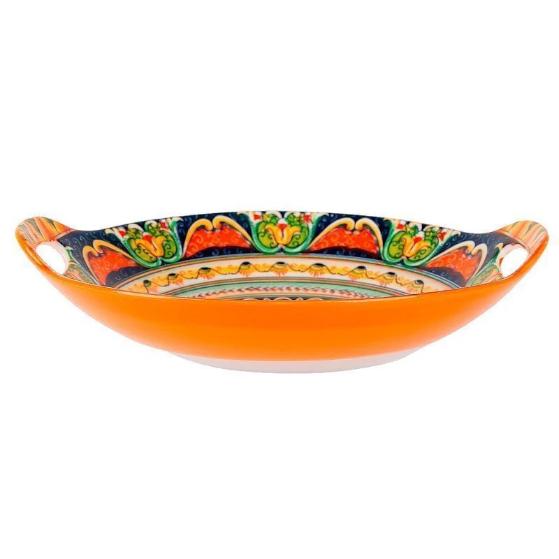 Каждый предмет из коллекции Arabesque создан с использованием дополнительного слоя глазури поверх деколи, что позволяет сделать поверхность глянцевой, а цвета максимально яркими. В результате получается неповторимое изделие, которое будет привлекать внимание и радовать глаза своих владельцев.