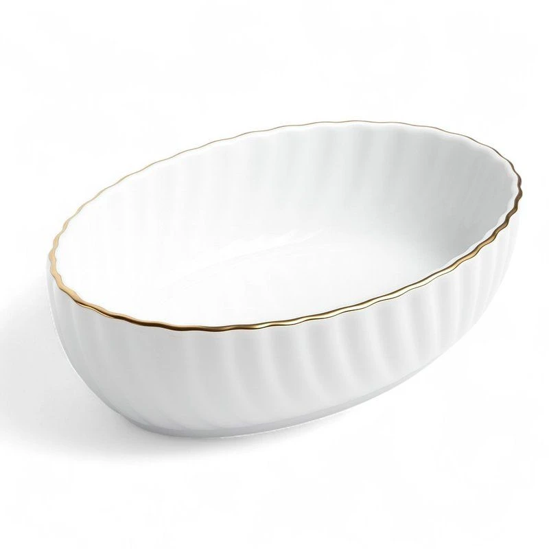 Блюдо сервировочное LORAINE – это стильное решение для любого торжества. Этот элемент декора создаст атмосферу роскоши на вашем празднике. Посуда для сервировки изготовлена из керамики высокого качества. Окантовка золотого цвета придает изделию особый шик и элегантность, подчеркивая его премиальность. Благодаря своим размерам блюдо для подачи подойдет для легких закусок, фруктов, овощей, свежей выпечки, десертов, печенья, сыров, салатов, и даже для таких блюд как шашлык, плов, картофель, блюда из рыбы и мяса – эта посуда сервировочная справится со всеми кулинарными задачами. Блюдо прямоугольное LORAINE сочетает в себе функциональность и эстетику. Возможность мытья в посудомоечной машине делает уход за ним максимально простым и удобным. Практичность и удобство использования делают эту посуду для сервировки незаменимым помощником на кухне. Такое декоративное блюдо обязательно понравится тем, кто ценит практичность и красоту в одном предмете. Это блюдо сервировочное белое может стать замечательным подарком для истинных ценителей эстетики и оформления стола. Оно подарит радость от каждой трапезы и будет радовать глаз своей изысканностью.
