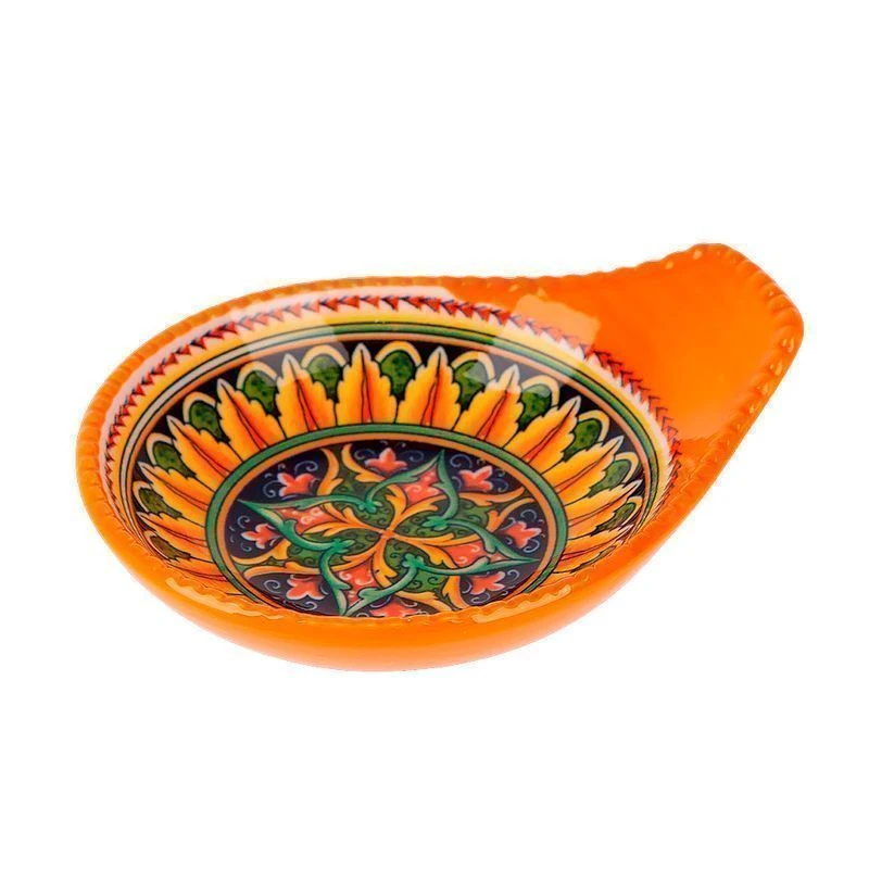 Каждый предмет из коллекции Arabesque создан с использованием дополнительного слоя глазури поверх деколи, что позволяет сделать поверхность глянцевой, а цвета максимально яркими. В результате получается неповторимое изделие, которое будет привлекать внимание и радовать глаза своих владельцев.