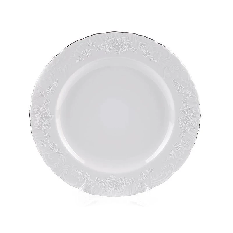 Любители классики по достоинству оценят изящесво серии "Рококо платина''. Нежный орнамент деколь платиной в обрамление серебрянной отводки является образцом утонченности. Контроль качества, прочность и белизна фарфора, неповторимые рельефы серии ''Рококо'', позволяют идеально вписаться в дизайн любого дома и послужить великолепным подарком. Не рекомендуется мыть в посудомоечных машинах.