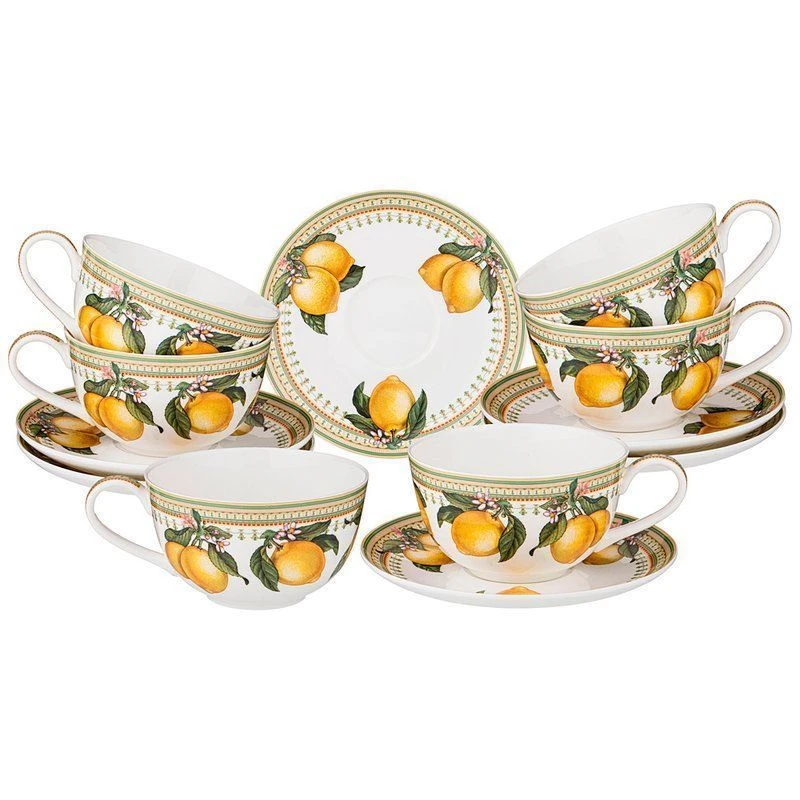 ТМ LEFARD авторская коллекция «Лимоны» - это вкус и элегантность в сервировке стола и несомненное украшение в интерьере кухни. Изделия выполнены из тонкого, легкого и прочного магнезийного фарфора, способны красиво звучать. При постукивании деревянной палочкой по стенкам фарфоровой чашки она отзовется долгим чистым звуком, как если бы вы держали в руке колокольчик. Красивая деколь, сочетающая оригинальный орнамент с выразительными лимонами. Натуральные, приятные глазу оттенки, всегда в тренде. Мягкие формы и удобные размеры и объемы посуды помогут сервировать стол и создадут непринужденную домашнюю атмосферу. Красочная упаковка. Прекрасный подарок. Продукция прошла сертификацию и безопасна для контакта с пищевыми продуктами. Можно смело мыть в посудомоечной машине с применением мягких моющих средств, использовать в микроволновой печи