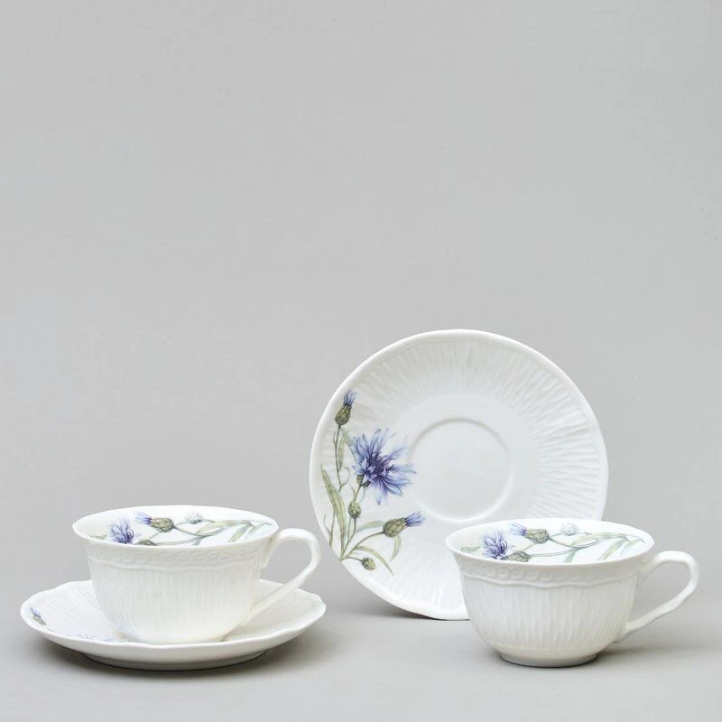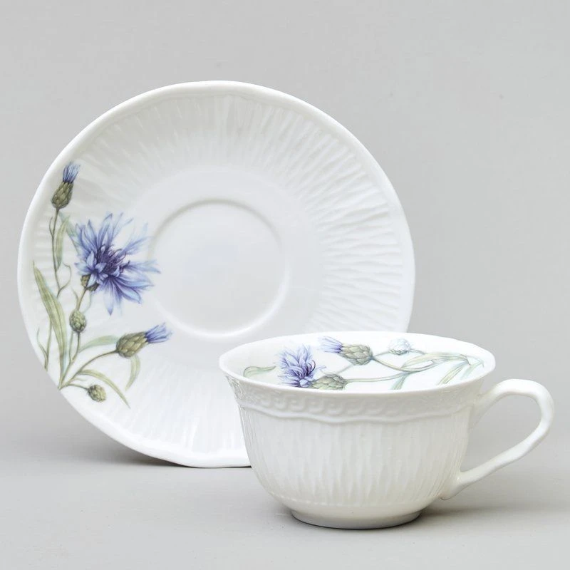 Васильки ТМ LEFARD - уникальная коллекция лёгкого, тонкого, прозрачного и прочного фарфора. Изящная рельефная сетка с красивым кантом, сверкающая глазурь. Эксклюзивный дизайн полевого василька небесного цвета, создающего романтическое настроение. Оригинальное размещение дизайна на рельефной части изделий, что создает дополнительную игру рисунка и объем. Широкий ассортимент позволяет сервировать обеденный стол, вечернее чаепитие – идеальный вариант для всех случаев сервировки. Коллекция представлена чайным сервизом, чайными парами удобных объемов, десертными тарелками. Стильная цветная коробка, прекрасный подарок. Все изделия прошли сертификацию. Безопасны для контакта с пищевыми продуктами. Можно смело использовать в микроволновой печи и мыть в посудомоечной машине.