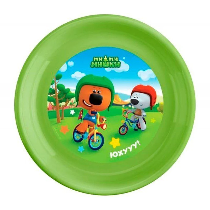 Тарелки для вторых блюд из коллекции Ми-ми-мишки стильные, легкие и прочные. Фактурная шагреневая полоска на наружной поверхности бортика обеспечивает нескользящий эффект. Бортики тарелки загнуты и удобны для того, что бы держать тарелку в руках. Декоры нанесены с помощью технологии вплавления этикетки и имеют двойной ламинирующий слой для дополнительной защиты. Изготавливаются из 100% перерабатываемого прочного безопасного пищевого полипропилена, не содержат бисфенол А. Объем 400мл (до перелива).