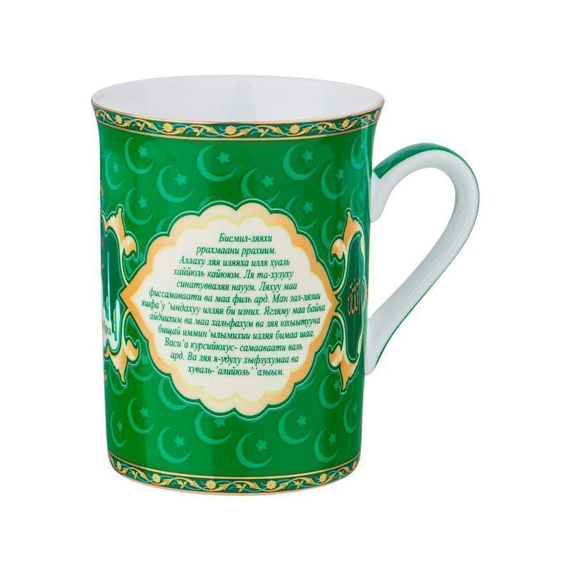 Эксклюзивная коллекция посуды «Суры из Корана». Кувшины, чайники, сахарницы, кружки, чайные пары, декоративные тарелки и другие предметы выполнены из высококачественного тонкостенного фарфора. Восточный орнамент, небольшие отрывки Сур из Корана на классическом арабском и русском языках с отделкой золотом украшают изделия. Это прекрасный мусульманский подарок, всегда нужный и теплый. Относитесь к нему бережно и с почтением. Посуду коллекции можно использовать как в повседневной жизни, так и на торжественном приеме.