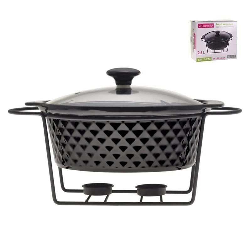 Такой керамический мармит с подставкой имеет привлекательный внешний вид и очень удобен в использовании, благодаря чему он непременно украсит Ваш праздничный стол.