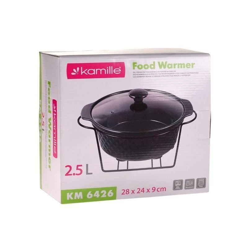Керамический мармит Kamille — прекрасное приспособление для сервировки стола и подачи горячих блюд. Он изготовлен из высококачественных материалов с применением современных технологий производства. Керамическая форма подходит для использования в духовых и микроволновых печах. Удобная металлическая подставка с подсвечником для подогрева блюд порадует при долгом застолье.