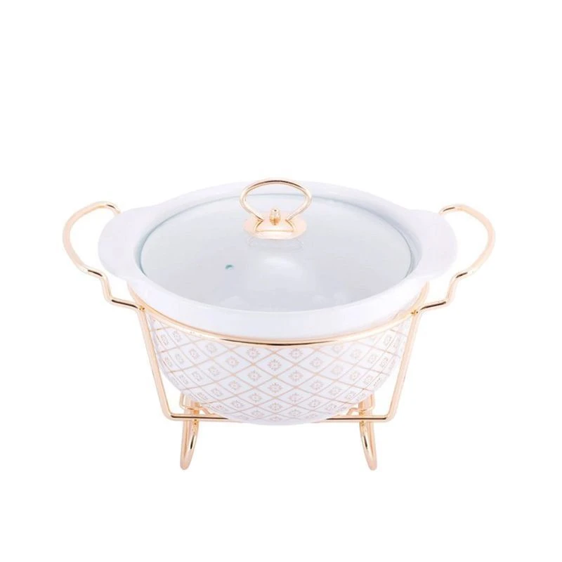 Керамический мармит Kamille — прекрасное приспособление для подачи горячих вторых блюд. Он изготовлен из высококачественных материалов с применением современных технологий производства. Керамическая форма с крышкой подходит для использования в духовых и микроволновых печах, а в комплекте с ней идет удобная металлическая подставка с подсвечником для подогрева блюд. Такой керамический мармит с подставкой имеет привлекательный внешний вид и очень удобный в использовании, благодаря чему он непременно украсит Ваш праздничный стол.