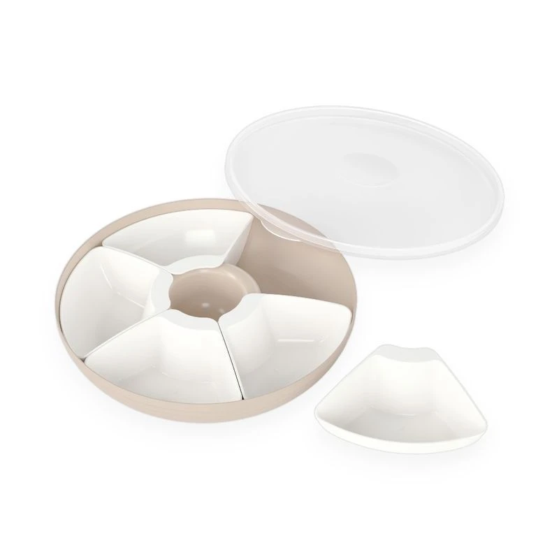 Менажница из коллекции “Оазис” представляет собой блюдо, имеющее пять маленьких салатников и соусницу. Предназначена для сервировки стола, подачи разнообразных закусок: от сыра до сладостей. Количество салатников регулируется в зависимости от блюда. Менажницу можно мыть в ПММ и использовать в СВЧ. Герметичная крышка позволяет дольше сохранять свежесть продуктов. Также менажницу можно использовать в качестве контейнера для транспортировки.