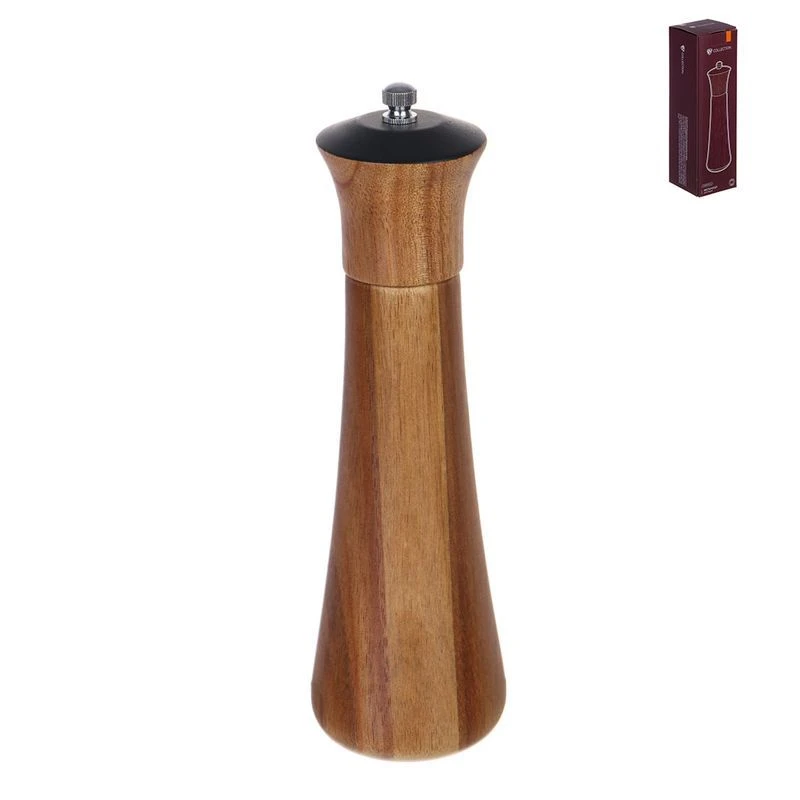 Мельница для специй – это качественный функциональный аксессуар для измельчения перцев и других специй. Имеет увеличенный объем, поэтому одного заполнения будет хватать надолго. Изделие выполнено из натурального дерева, которое сохраняет свежесть, вкус и аромат специй, а керамические жернова легко и быстро справляются с помолом. Мельница имеет удобную форму, а вращение рабочей части не вызывает сложностей и не требует больших усилий. Степень помола можно регулировать путем прижатия или ослабления винта в верхней части корпуса
