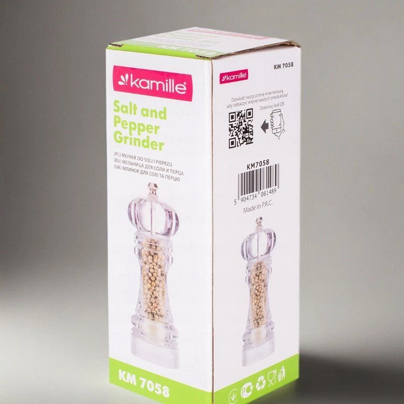 С помощью стильной функциональной мельницы Kamille Вы сможете с легкостью завершить Ваше блюдо, добавив к нему свой темперамент и характер. Она без труда измельчает соль и перец, при этом сохраняя их аромат. Такой аксессуар станет идеальным дополнением при сервировке стола, а стильный дизайн подойдет к интерьеру любой кухни.