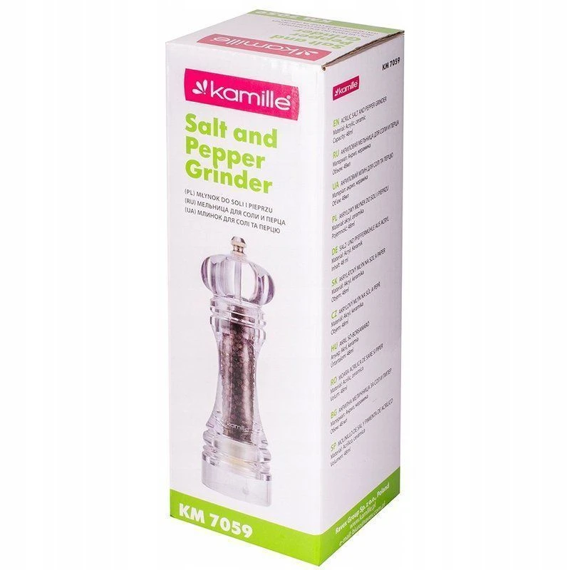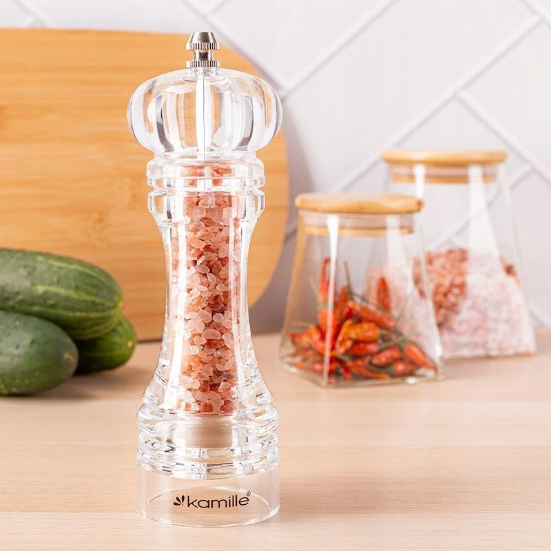 С помощью стильной функциональной мельницы Kamille Вы сможете с легкостью завершить Ваше блюдо, добавив к нему свой темперамент и характер. Она без труда измельчает соль и перец, при этом сохраняя их аромат. Такой аксессуар станет идеальным дополнением при сервировке стола, а стильный дизайн подойдет к интерьеру любой кухни.